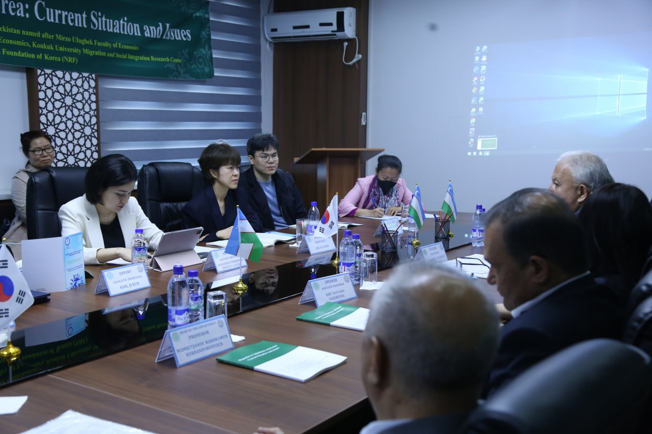 Iqtisodiyot fakultetida Koreyadagi Konkuk universiteti bilan hamkorlikda “Migrantlarning huquqlari va ularning himoyasi, hamda migrantlar bilan bog‘liq ijtimoiy muammolarni hal qilish usullarini ishlab chiqishga qaratilgan “O‘zbekiston va Koreyadagi migratsiya: hozirgi holat va muammolar” mavzuida ilmiy-amaliy konferensiya bo‘lib o‘tdi.