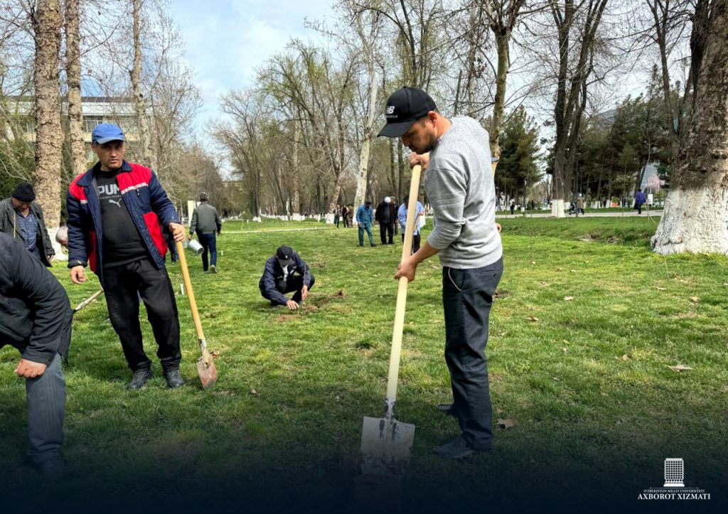 As part of the “Green Space” Nationwide Project, the National University of Uzbekistan organized a tree-planting campaign to expand the campus’s green areas by planting ornamental trees in unused spaces.