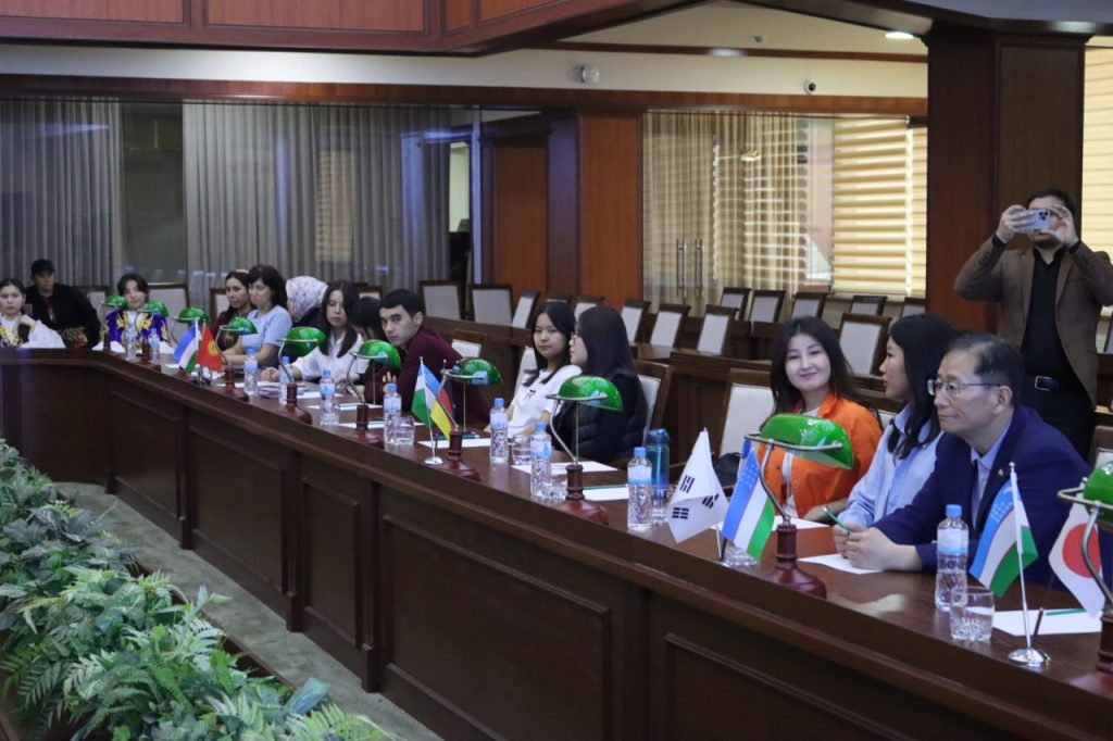 Shuningdek, uchrashuvda joriy o‘quv yilida O‘zbekiston Milliy universitetiga dars berish uchun tashrif buyurgan xorijlik professor-o‘qituvchilar, jumladan, Yaponiyaning Osaka universiteti o‘qituvchisi, professor Nakamura Katsuxiro hamda Taekwondo fakultetida faoliyat yuritayotgan Baek Mun Jon ham ishtirok etib, talabalarga universitet to‘g‘risidagi fikr-mulohazalarini bildirib o‘tdilar