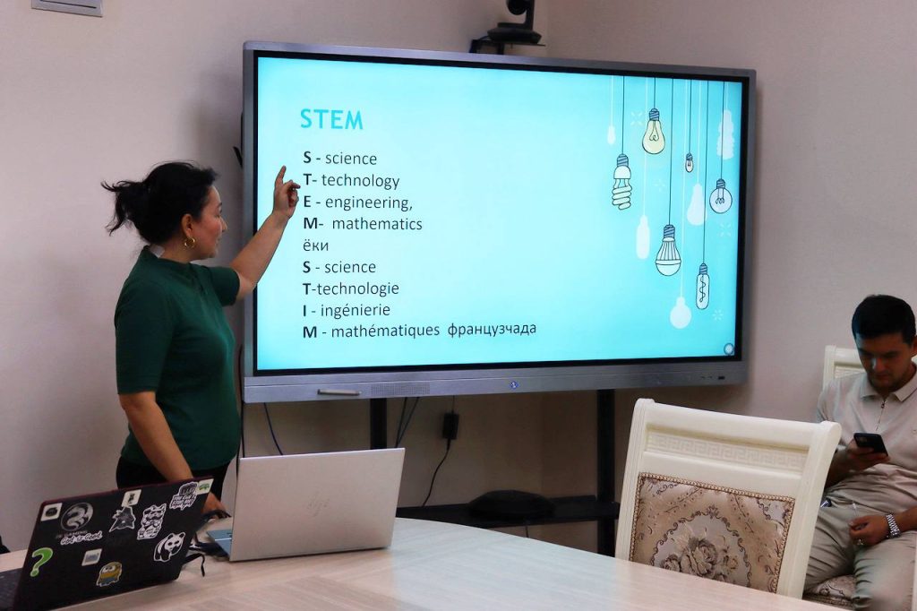 Seminarda tabiiy fanlardan o‘tkaziladigan laboratoriya darslari qurilma yordamida virtual olib borildi va STEM fanlari o‘qituvchilariga ko‘rsatmalar berildi.