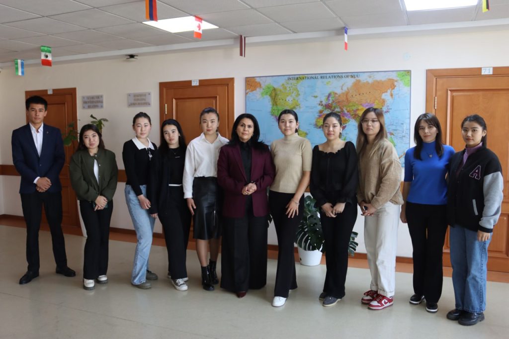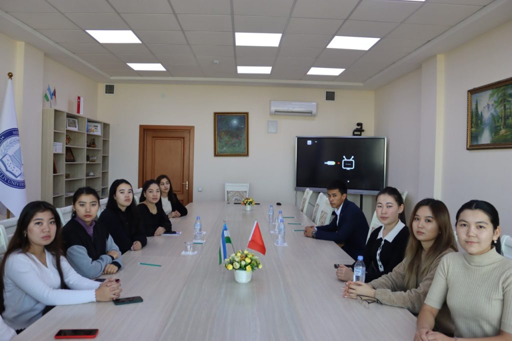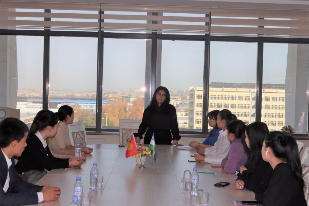 Xorijiy talabalar bilan uchrashuvda Xalqaro aloqalar bo‘yicha prorektor Raima Shirinova ularga universitetda taxsil olish, kredit-modul tizimi va yotoqxona sharoitlari tug‘risida maʼlumot berdi.