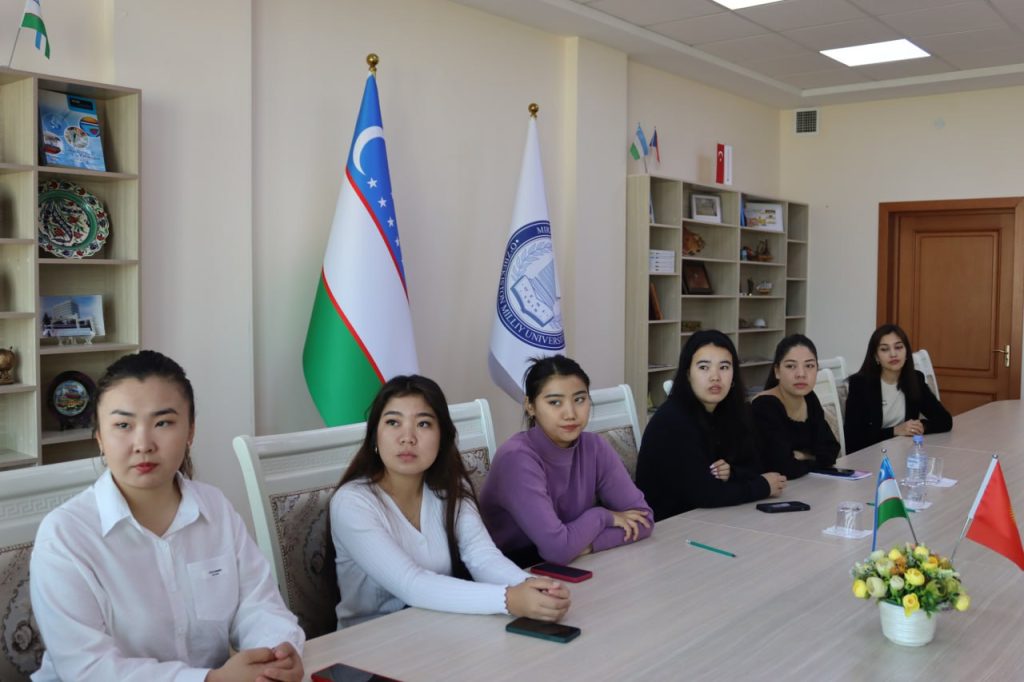 Bugun 20 noyabr sanasida Mirzo Ulug‘bek nomidagi O‘zbekiston Milliy Universitetiga Qirg‘iziston Respublikasining Osh davlat universiteti talabalari akademik almashinuv hamkorlik shartnomasiga asosan akademik mobillik dasturi doirasida kuzgi smestrda tahsil olish uchun universitetiga tashrif buyurishdi.