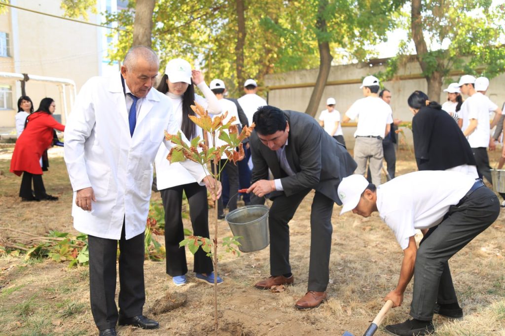 Davlatimiz rahbari tomonidan ilgari surilgan “Yashil makon” umummilliy loyihasi doirasida tashkil etilgan aksiyada universitet rahbariyati, professor-o‘qituvchilar, fakultet talabalari, ishchi-xodimlar, tyutorlar hamda talaba-yoshlar ishtirok etdi.